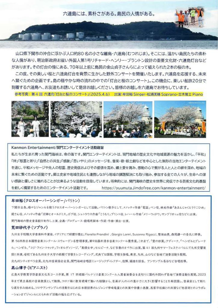 ※渡船 行き:竹崎渡船場10時出港 帰り:六連島15時出港臨時便